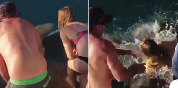Tiburón arrastra a mujer mientras lo alimentaba