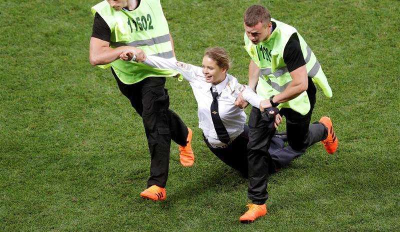Una espontánea miembro de las Pussy Riot en el campo del Estadio Luzhnikí de Moscú.: EFE/Lavandeira Jr Crédito: Lavandeira Jr | EFE