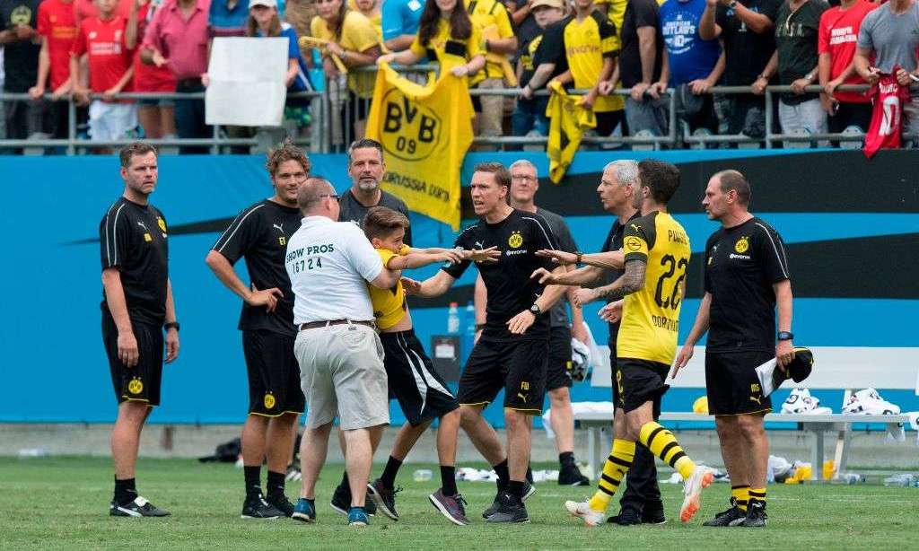 El hecho ocurrió cuando Pulisic iba a dar una entrevista después que su equipo Borussia Dortmund ganó 3-1 al Liverpool inglés. Un hincha entró al campo para tomarse una foto con el niño. Fue ahí cuando dos miembros de la seguridad lo tomaron por la fuerza como si se tratara del peor de los delincuentes.