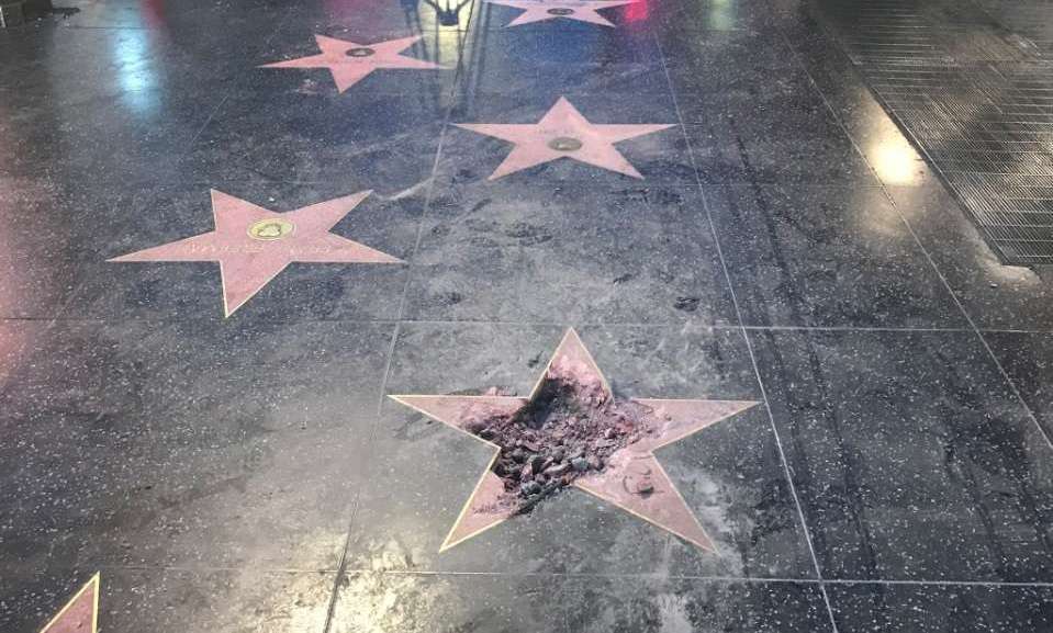 Destrozan la estrella de Trump del paseo de la fama de Hollywood