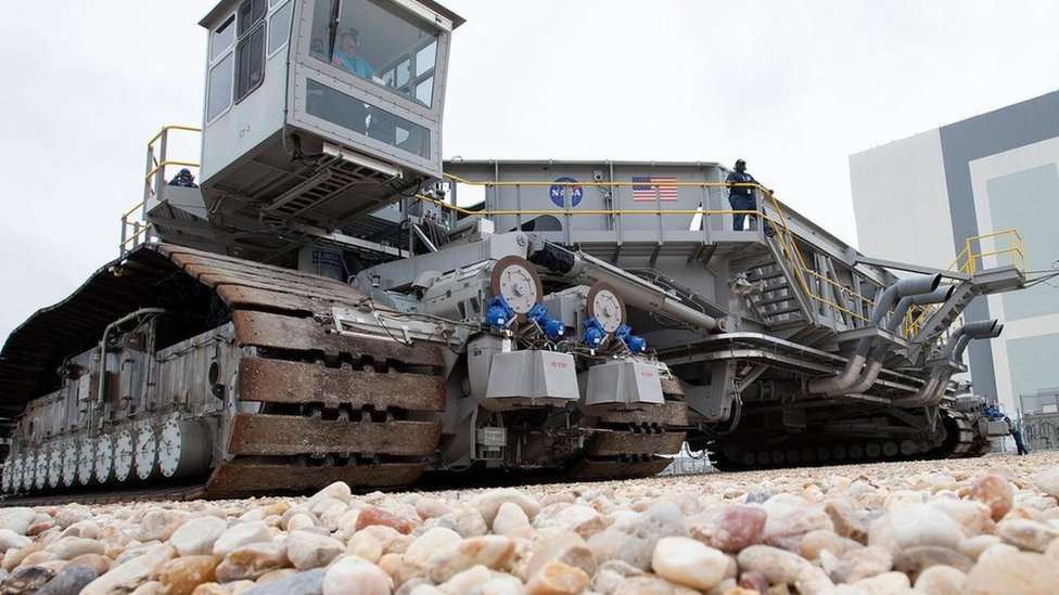 “Sentimos mucho orgullo al llevar el peso de programa espacial de Estados Unidos sobre nuestras espaldas”, le dice a la BBC Bob Myers, uno de los pilotos de élite encargados de manejar el enorme vehículo-oruga que se usa para mover naves espaciales, y que está entre los mayores jamás construidos.