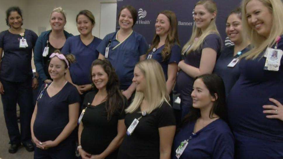 En un hospital suburbano de Arizona 16 enfermeras de cuidados intensivos descubrieron recientemente que están todas embarazadas.