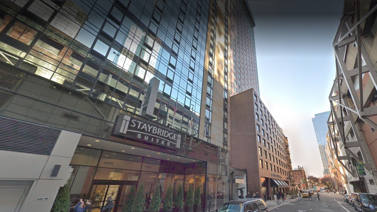 Las llamas estallaron poco antes del mediodía en Staybridge Suites, un hotel de 36 pisos ubicado en 340 W. 40th St.