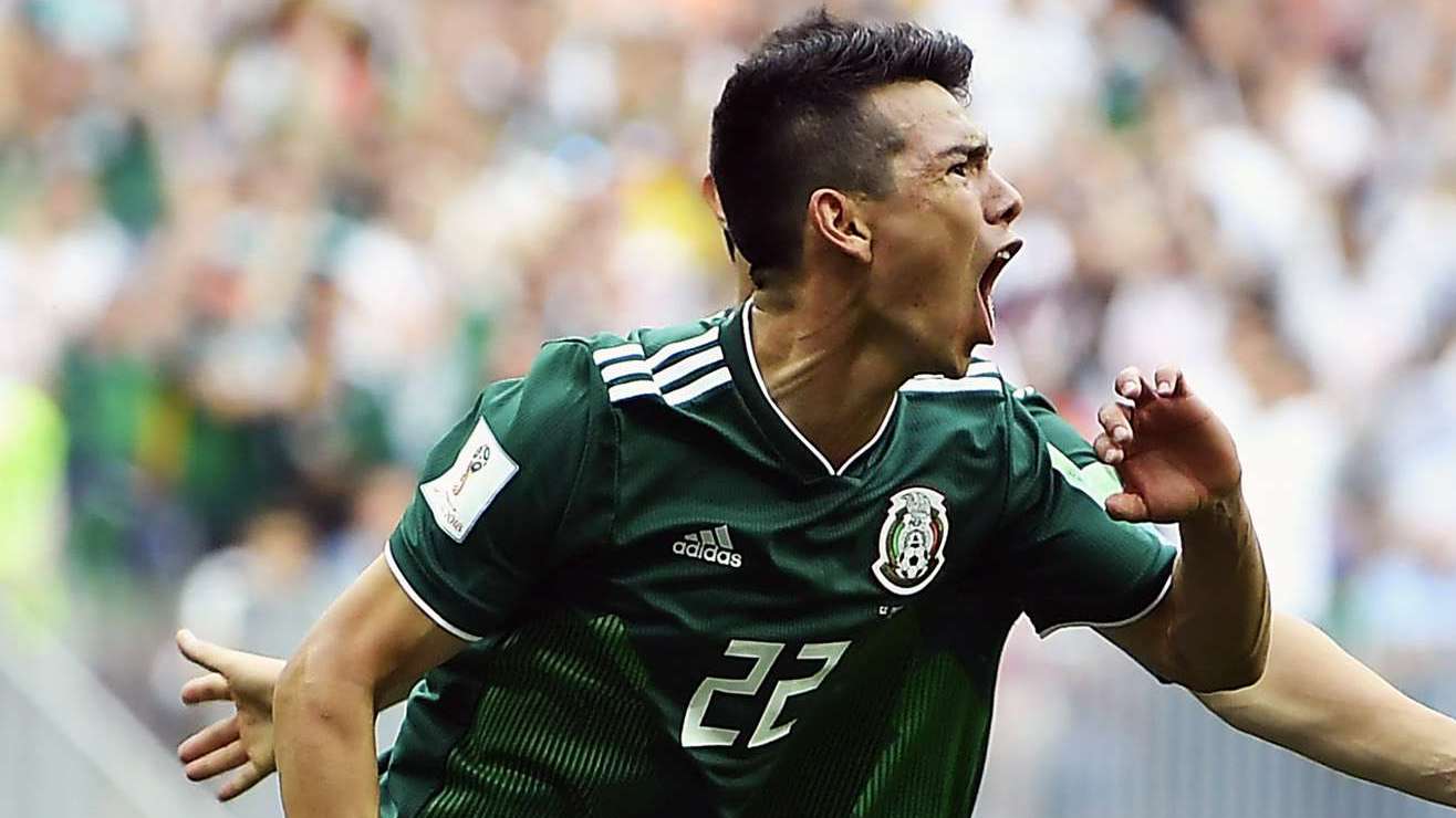 Moscú, Rusia, 17 de junio de 2018. Hirving Lozano en festejo de gol, durante el juego de la primera fase del Grupo F de la Copa Mundial de la FIFA Rusia 2018, entre la Selección de Alemania y la Selección Nacional de México, celebrado en el Estadio Olímpico Luzhniki. Foto: Imago7/Agustin Cuevas Crédito: Imago 7