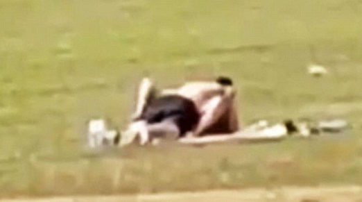 La segunda parte de la pareja interrumpida teniendo sexo en parque