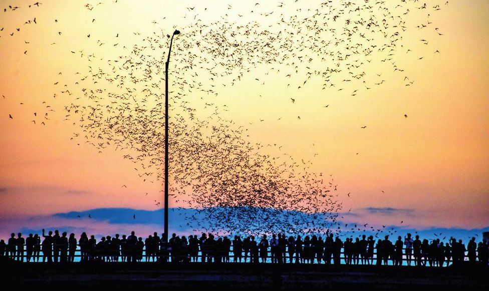 Cada año, cientos de miles de murciélagos de cola libre viajan hacia el Puente del Congreso en la ciudad de Austin. Los visitantes son vitales para la economía de Texas y son parte de la identidad de Austin, que celebra su llegada con obras de arte, música y hasta un "batifestival"