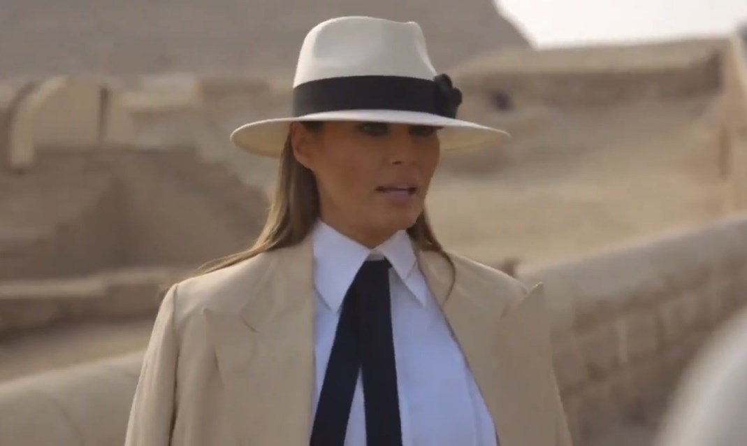 Melania Trump y su vestimenta en Egipto que recordó a nazi de una película de Indiana Jones
