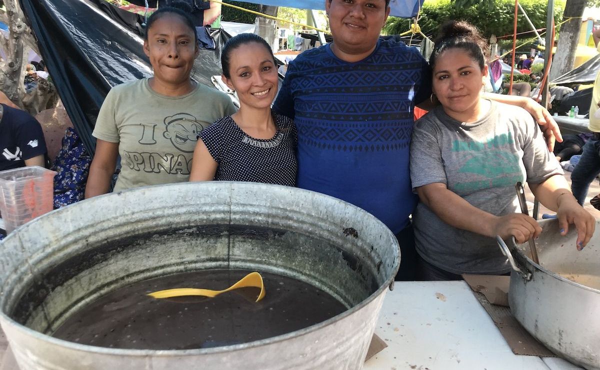 Karla Montes (tercera de d a i) con amigos mexicanos dando comida a migrantes.. Crédito: Gardenia Mendoza | Impremedia