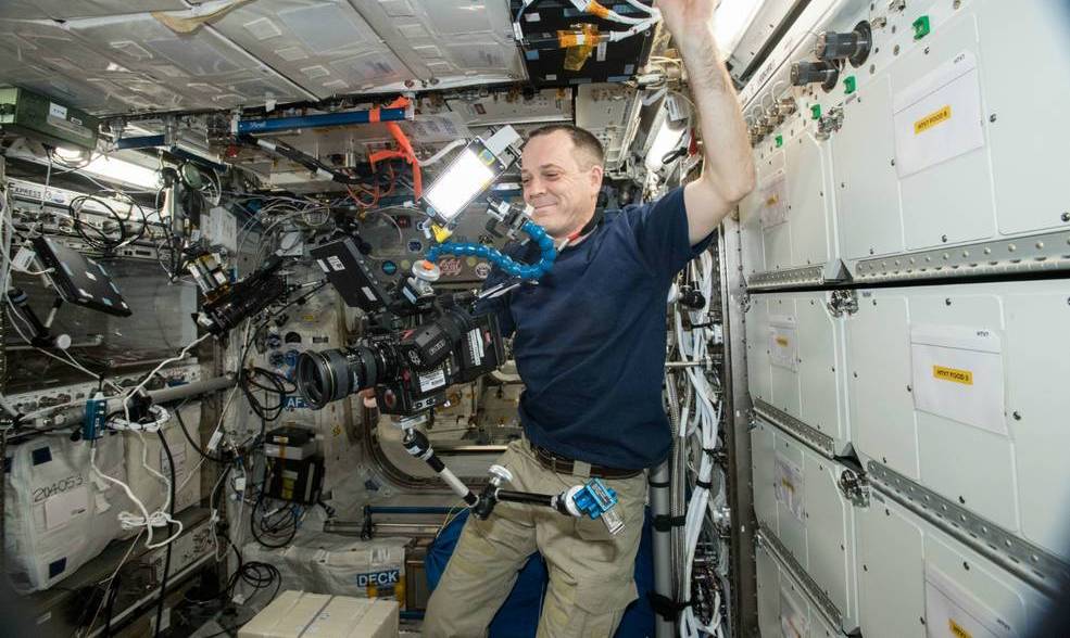 El astronauta Ricky Arnold filma en la Estación Espacial Internacional.