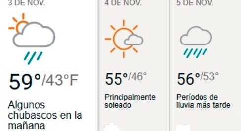 La temperatura bajará, con un promedio de 59F (15C) durante el día y 43F (6C) en la noche.