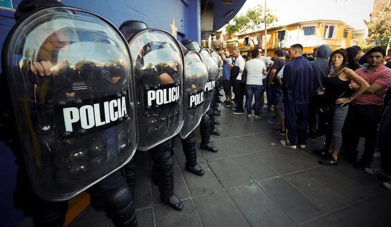 Hinchas de Boca enfrentan a la policía afuera del estadio La Bombonera por una entrada para la final de la Copa Libertadores. Crédito: Juan Ignacio Roncoroni | EFE