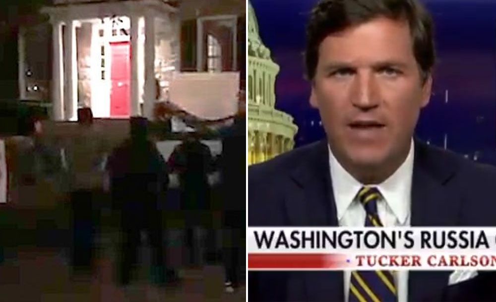 Manifestantes protestan afuera de la casa del polémico Tucker Carlson de Fox News