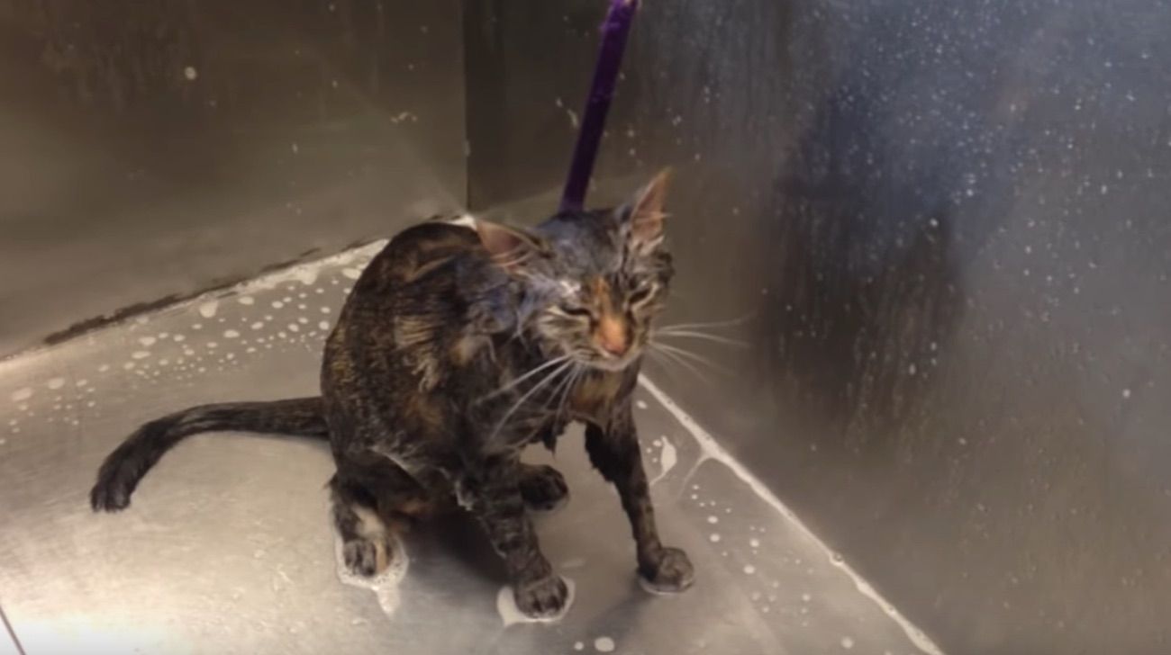 A pocos gatos les gusta el agua, por lo que un bañar a un felino se convierte en todo un acontecimiento. Cuando el gatito protagonista de esta historia regresó a casa lleno de lodo, su dueña no pudo hacer otra cosa que llevarlo directamente a la ducha.