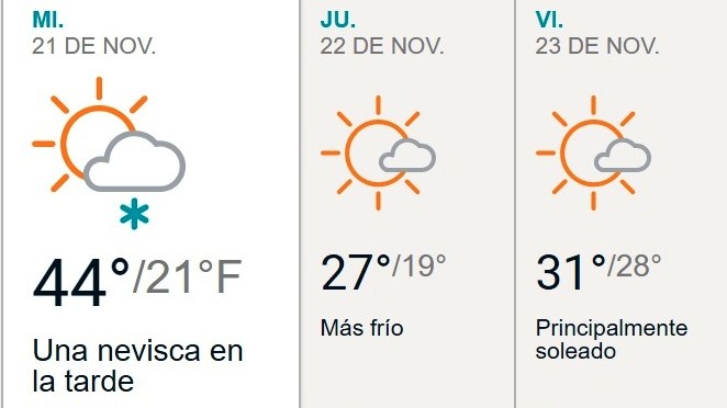 La temperatura se mantendrá hoy en la ciudad, con un promedio de 44F (6C) durante el día, pero bajará mucho en la noche, a 21F (-6C).