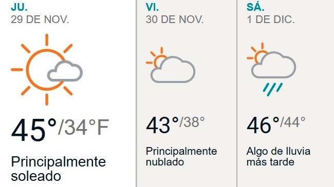 La temperatura subirá levemente hoy en la ciudad, con un promedio de 45F (7C) durante el día y 34F en la noche (1C).