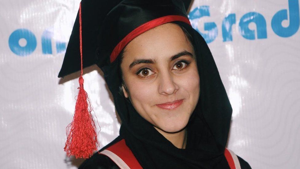 Continué estudiando políticas públicas y administración en la Universidad de Kabul y me gradué hace dos años con las calificaciones más altas de ese año.