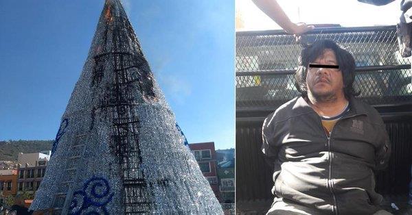 MÉXICO – Un hombre fue detenido en Pachuca, en el estado de Hidalgo luego de quemar el árbol monumental navideños de Plaza de Armas, porque odia la Navidad.