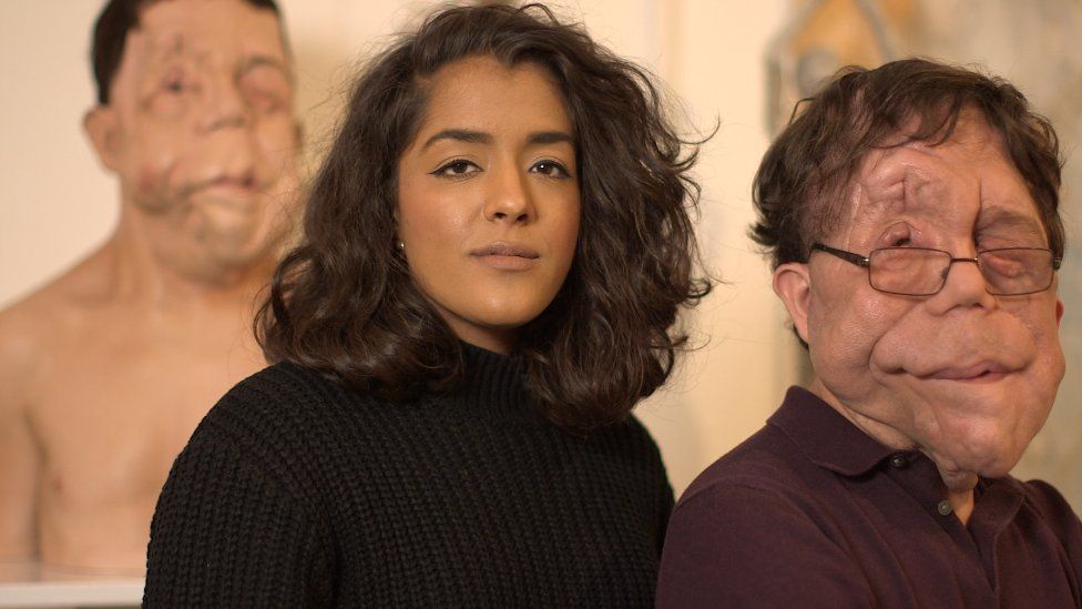 Mientras hacía el documental, Arooj Aftab conoció a Adam Pearson, que también padece NF1. Crédito: BBC