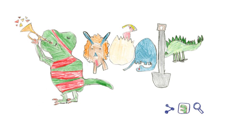 Niña de 7 años ilustra la página principal de Google con su dinosaurio