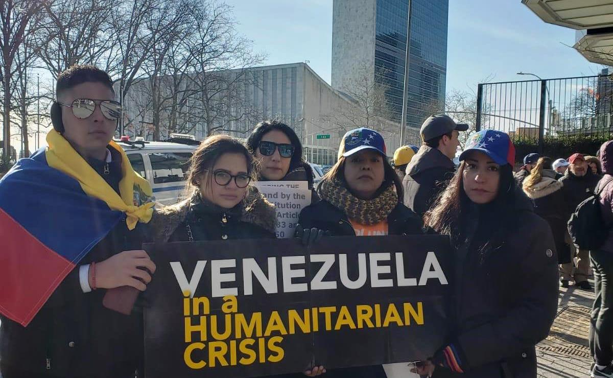 Venezolanos protestaron esta fría mañana en la ONU Crédito: GLORIA REQUENA