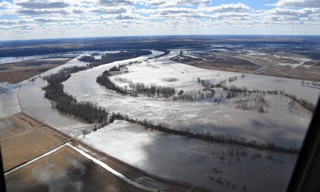 Inundaciones y rotura de diques en el río Missouri. Crédito: Twitter @GovParsonMO