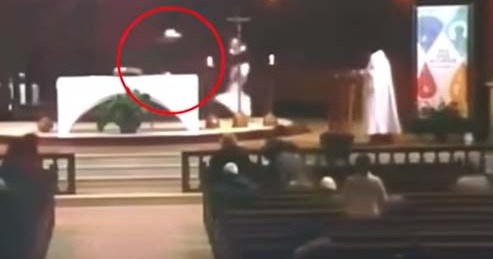 La escena quedó grabada en una transmisión que se hizo en vivo de la misa