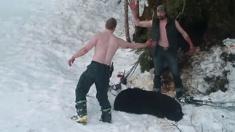 Un hombre junto con su hijo celebran el brutal momento en el cual sacan de la guarida a una osa negra que se encontraba hibernando junto con sus dos cachorros en la Isla Esther ubicada en Alaska.