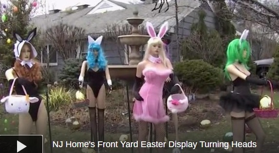 Vecina destruye “vulgar” decoración de Pascua con conejitas estilo Playboy en Nueva Jersey