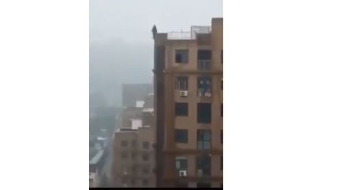 El video fue captado en la ciudad de Bombay, en India. Un peatón miró hacia lo más alto de un gran edificio y se percató que en la azotea se encontraba una persona que se caminó hasta la orilla de este, desde donde pretendía hacerse una selfie.