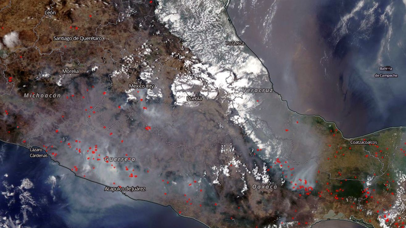 La NASA capta imagen de los incendios forestales y contaminación en México