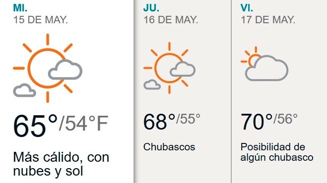 Pronostican además vientos medios de 10 mph en el día y 6 mph al oscurecer, según AccuWeather.