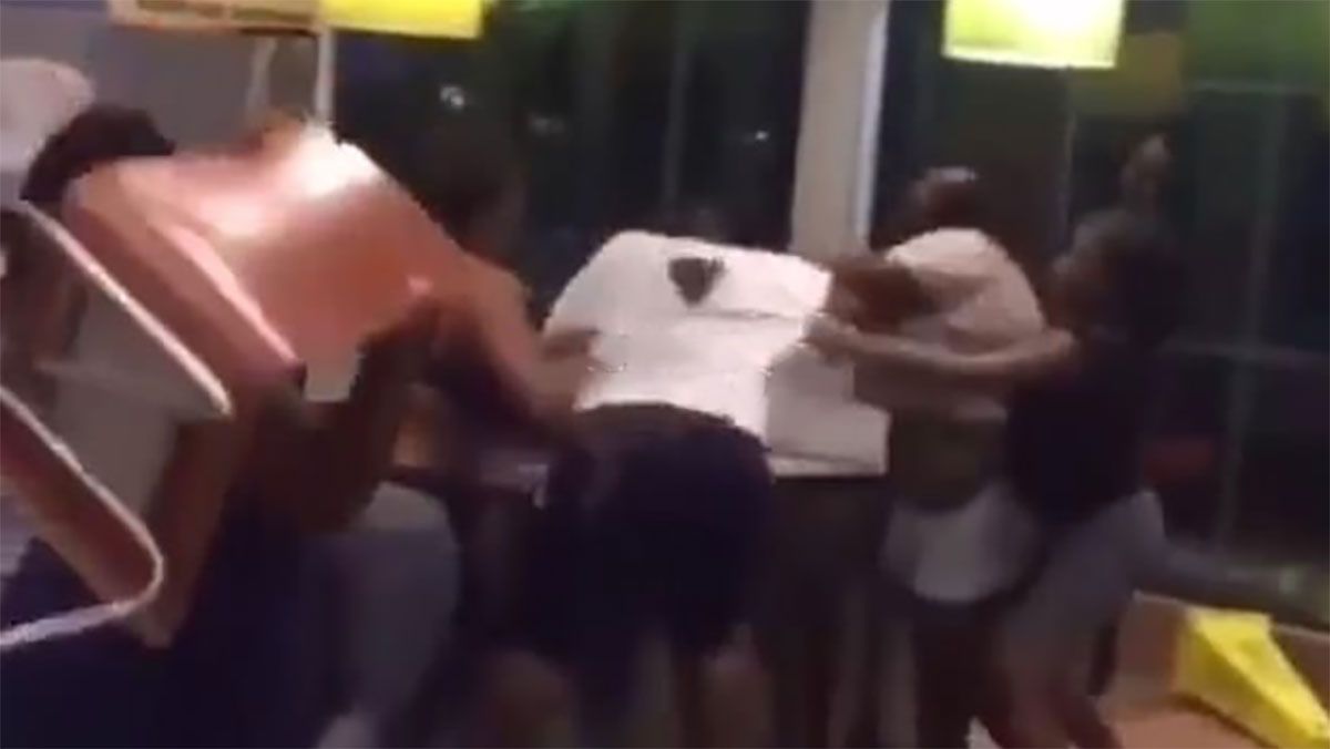 Una verdadera lucha sin cuartel se desató en una sucursal de McDonald’s cuando cinco mujeres armaron una pelea en donde volaron pelucas y sillas por todos lados.