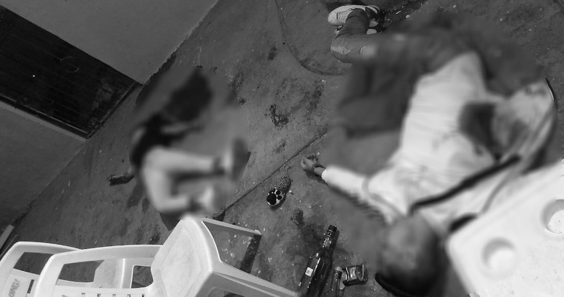 Los cuerpos quedaron en el patio junto a unas botellas. Crédito: @AFondo