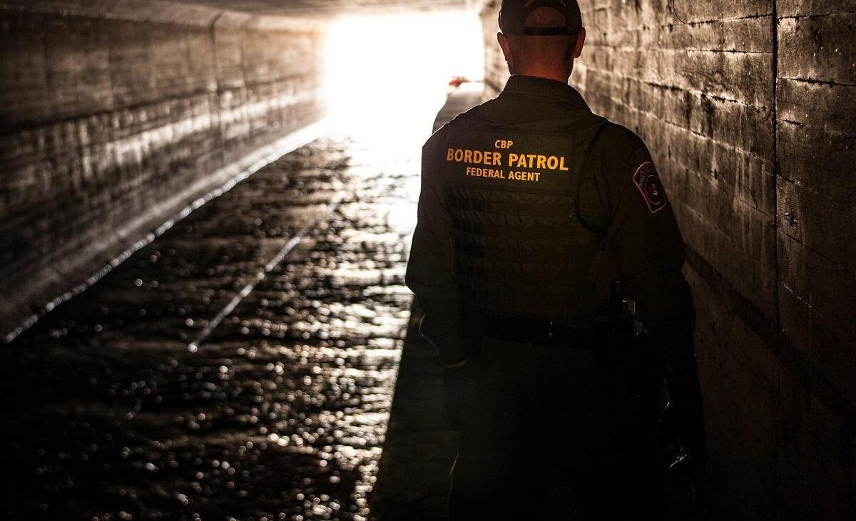 Un agente fronterizo vigila un túnel de drenaje que va desde Nogales, Arizona, hasta México. Crédito: Josh Denmark CBP