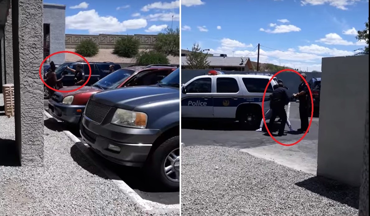 En una reacción, considerada excesiva, oficiales siguieron a la familia y la acorralaron en el estacionamiento de un complejo de apartamento frente a los niños; detienen a la madre en medio de gritos mientras carga a su bebé. El exfiscal general de Arizona, Thomas Horne, ahora representa a Ames y Harper y exige $10 millones de dólares por el uso excesivo de fuerza.