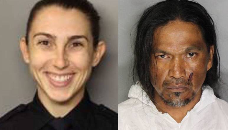 Oficial Tara O’Sullivan, y el sospechoso Adel Ramos en imágenes publicadas por el Departamento de Policía de Sacramento. Crédito: SPD