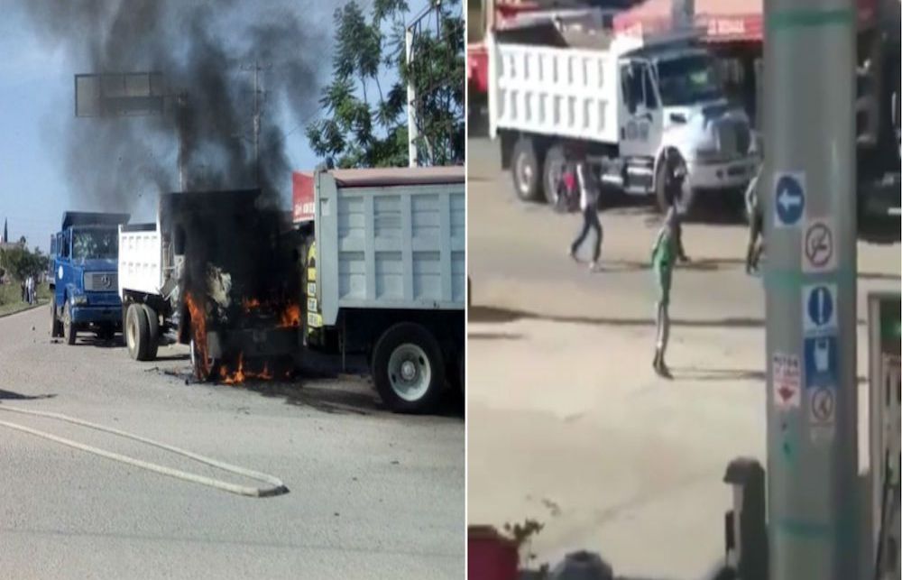 En las grabaciones también se observa cómo al menos dos hombres se detienen para cargar sus armas y cómo los agresores también quemaron un camión de carga.