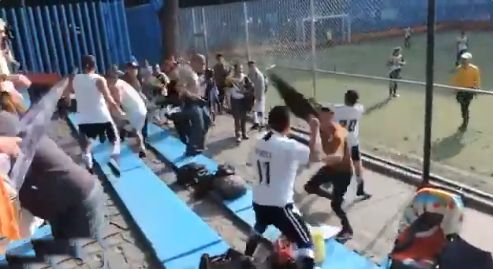 Lo que parecía un partido de fútbol entre niños terminó en una tremenda pelea campal entre los adultos que ahí se encontraban.