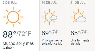 La temperatura se mantendrá hoy en un promedio de 88F (31C) durante el día y bajará hasta 72F (22C) en la noche.