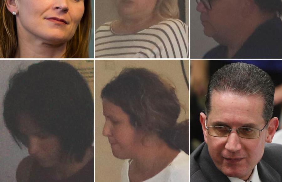 La exsecretaria de Educación, Julia Keleher; la ex directora ejecutiva de ASES, Ángela Ávila; el presidente de BDO, Fernando Sherrer Caillet; las contratistas Glenda y Mayra Ponce; y el contratista Alberto Velázquez Piñol. Crédito: (GFR Media)
