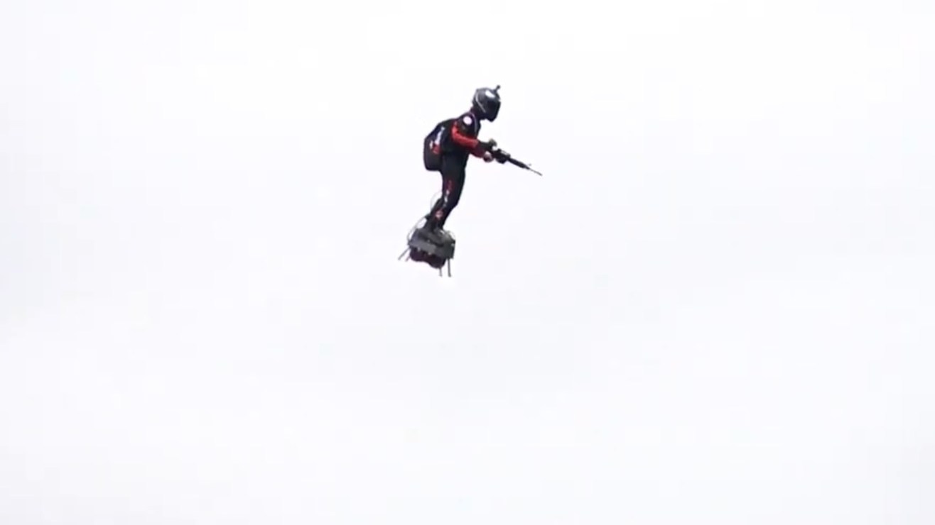 El equipo Flyboard Air, reportaron varias agencias, incluida Reuters, fue creada por Franky Zapata, quien lo utilizó en el desfile por el Día de la Bastilla, sobrevolando a la multitud como parte del desfile militar en los Campos Elíseos.