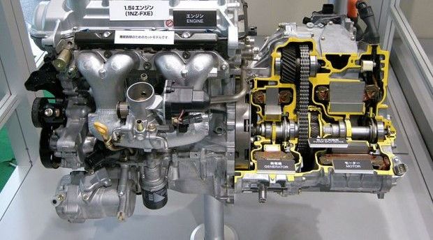 El sistema se completa con un engranaje central conectado con un generador de carga de baterías accionado por un motor de gasolina que otorga potencia extra al motor eléctrico. Los motores híbridos se pueden dividir en híbridos en paralelo e híbridos en serie.