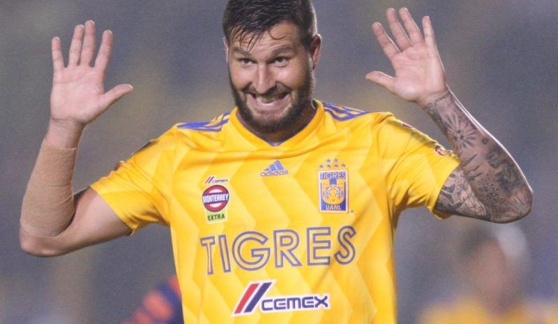 André-pierre Gignac de Tigres festeja su cuarto gol frente al Puebla. Crédito: Imago7