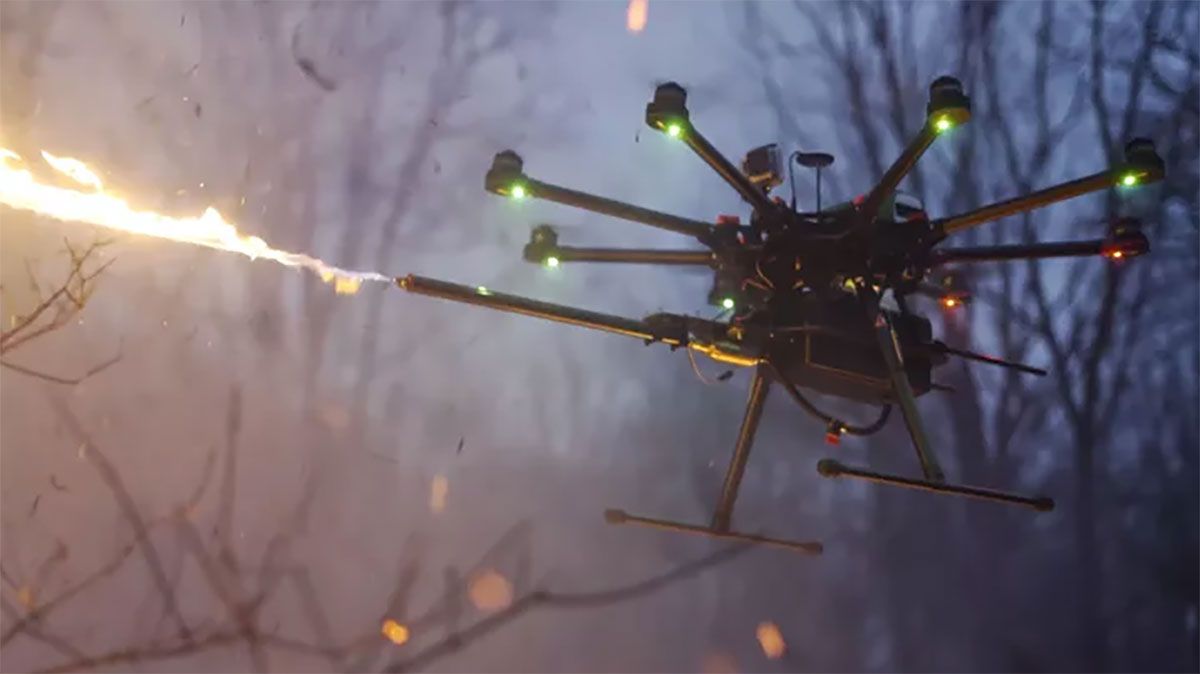 Ahora, la pregunta sería, ¿para qué podrías necesitar un dron lanzallamas? Algunos usos que la empresa propone es que podrías hacer quemas controladas de pasto o destruir nidos de avispas.