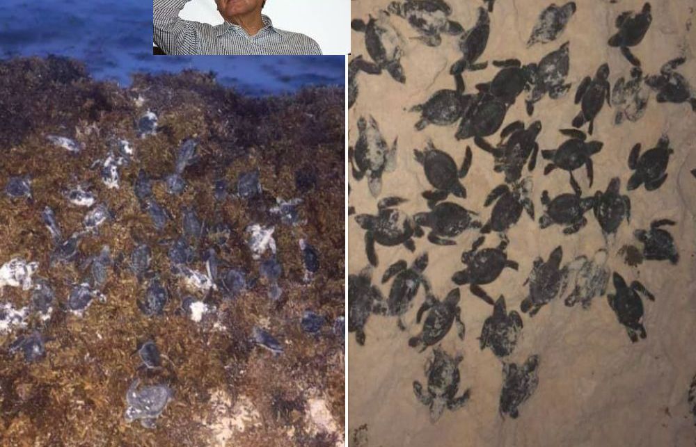 AMLO niega que sargazo es un problema y mientras cientos de tortugas mueren Crédito: Especial