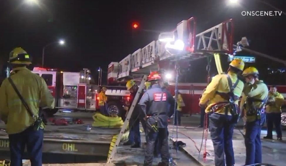 Un hombre que se encontraba trabajando en una calle de Anaheim quedó atrapado en un hoyo de unos 20 pies de profundidad tras el choque de un carro contra el sitio de construcción al cual fue asignado.