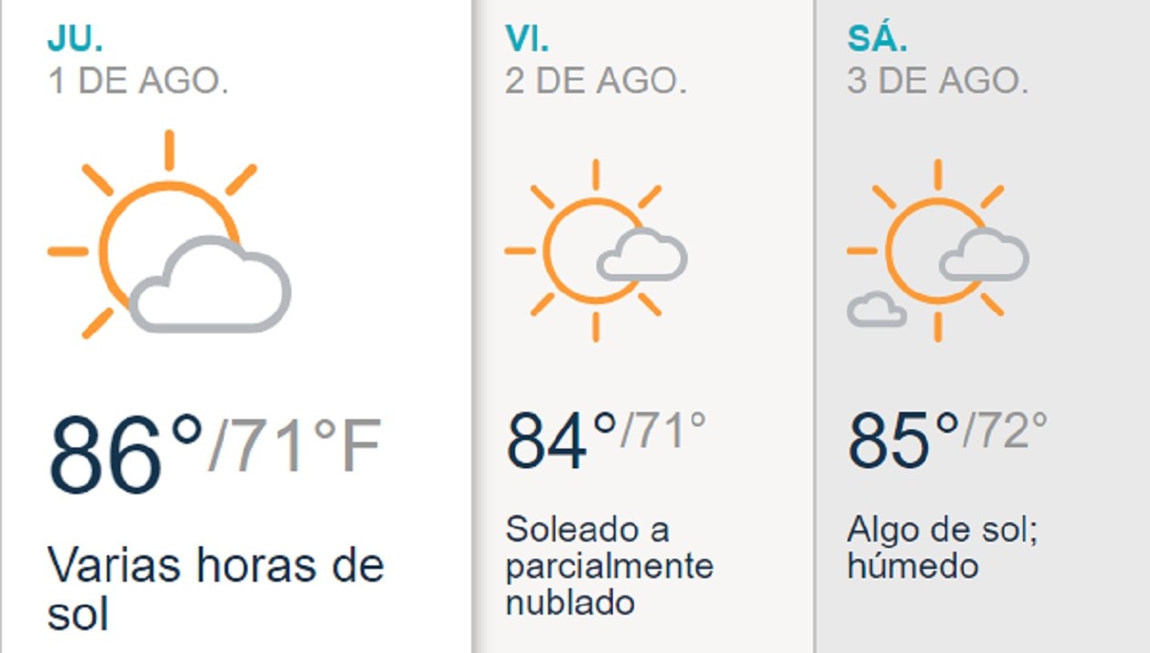 La temperatura se mantendrá hoy en un promedio de 86F (30C) durante el día y bajará hasta 71F (22C) en la noche.