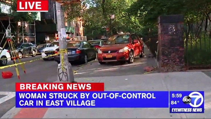 Una anciana que vendía helados fue atropellada por un automóvil cuando un conductor hizo un giro en U y se subió a una acera en el East Village ayer por la tarde.