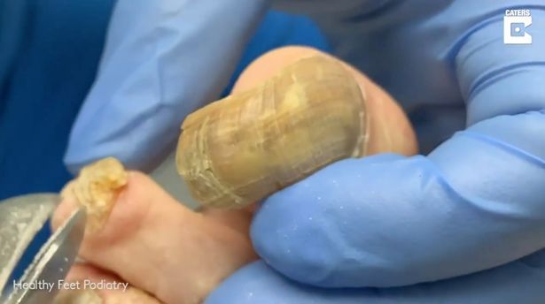 Una mujer que no se había cortado las uñas de los pies durante más de un año necesitó un tratamiento urgente que fue grabado para mostrar la gravedad de la situación.