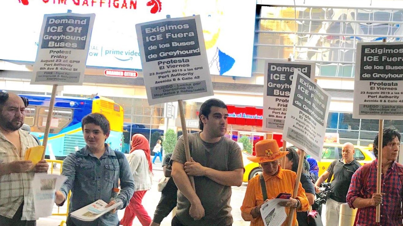 El Terminal de Autobuses de la Autoridad Portuaria de Nueva York, ubicado en el corazón de Manhattan, estuvo este lunes más concurrido de lo normal. Organizaciones de defensa de los inmigrantes como Fight for Immigrants & Refugees Everywhere (Fire), entre pancartas y consignas, exigieron a la compañía de transporte Greyhound que cumpla con su “derecho constitucional” de no permitir el acceso de ‘La Migra’ a sus unidades y terminales.